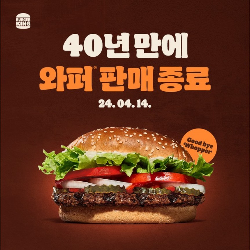 와퍼는 판매종료(단종)가 아닌 40주년 맞이로 와퍼를 리뉴얼(재단장)하는 것이기 때문이다. 🍔