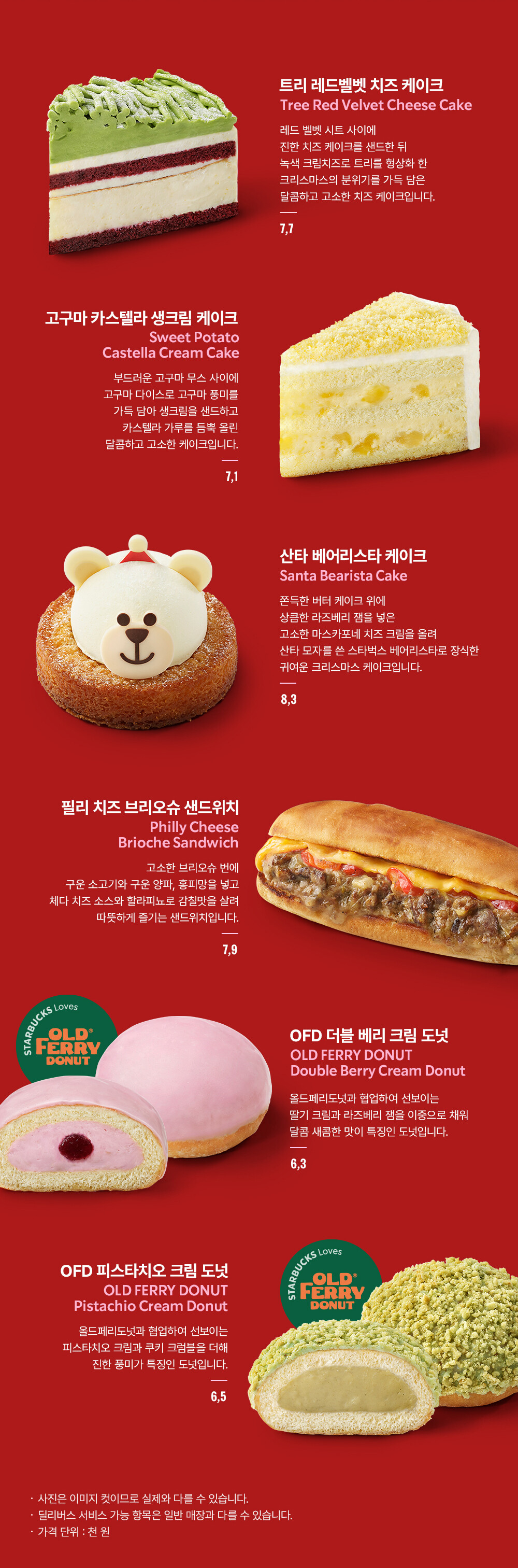 음료만 있는게 아니죠! 11월에 특별한 디저트메뉴도 있습니다. 홀리데이 느낌나는게 폭신폭신 달달해 보이는 메뉴들이에요.