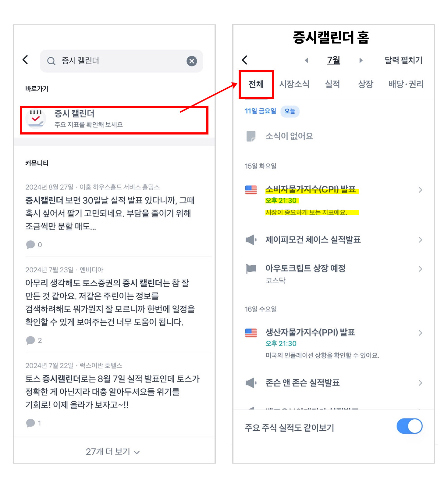 토스증권 증시 캘린더는 시장 뉴스뿐만 아니라,
