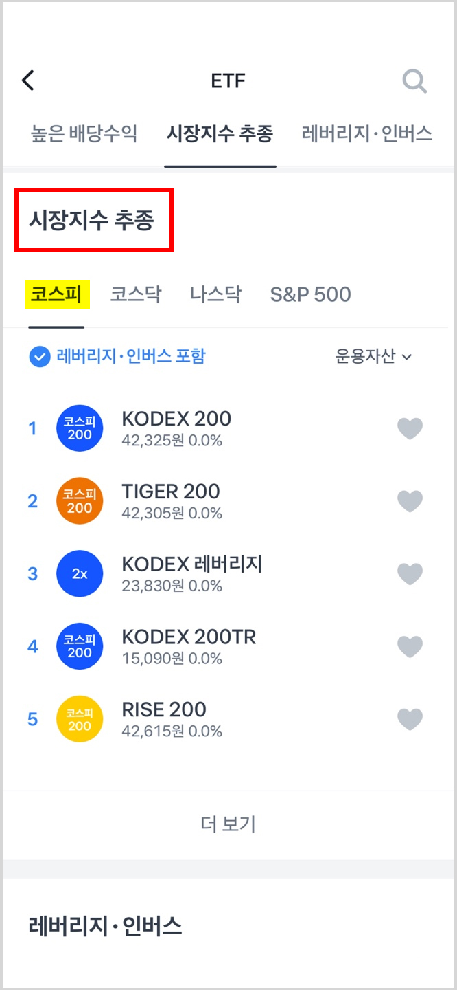 예: KODEX 200, TIGER 200, KODEX 레버리지