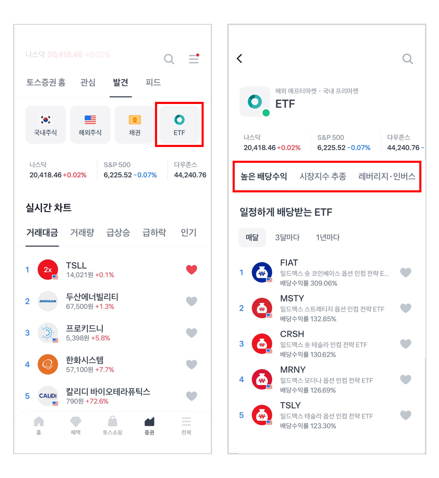 🔎 토스증권홈 > 발견 > ETF 탭