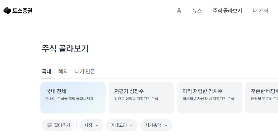 토스증권 PC 버전에서 새로 선보이는 주식 골라보기 기능