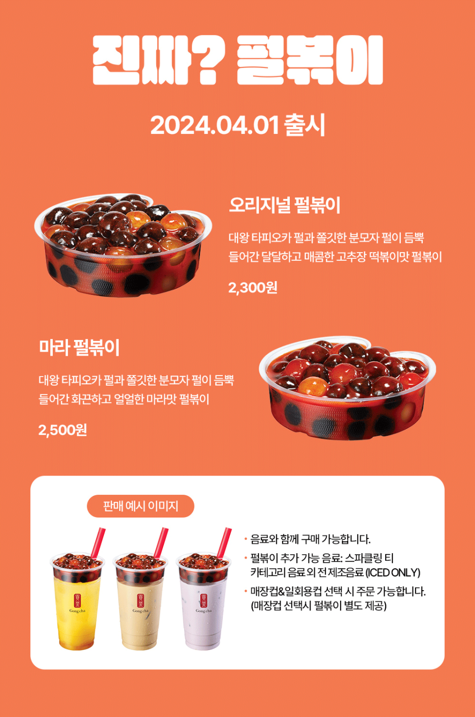 대왕 타피오카 펄과 쫄깃한 분모자 펄이 들어간 달달매콤한 떡볶이