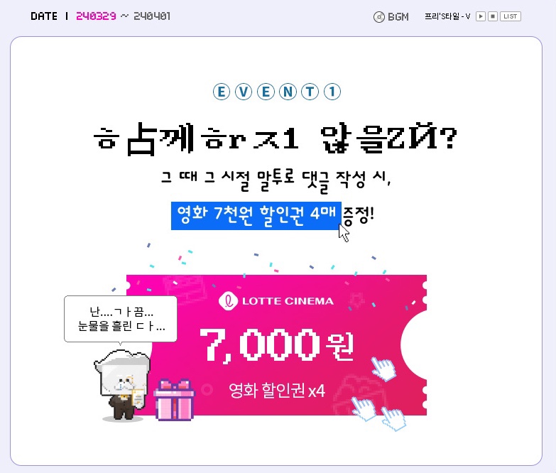 → 영화 7000원 관람권 4매 증정! (참가자 전원)