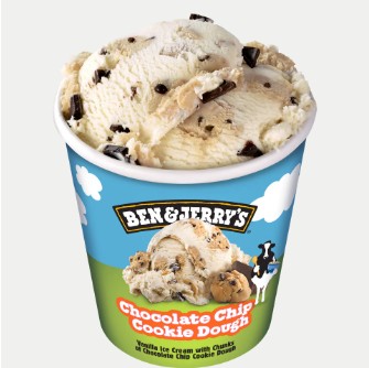 초콜릿 칩 쿠키 도우의 퍼지 덩어리가 들어간 바닐라 아이스크림