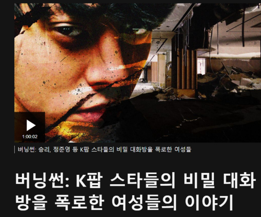 <버닝썬 : K팝 스타들의 비밀 대화방을 폭로한 여성들의 이야기>라는 제목의 이 영상은 사건의 면면과 더불어 피해 여성들의 인터뷰와 드러나지 않았던 새로운 사실까지 다루고 있습니다. 경찰과의 유착관계와 연루된 경찰의 이름, 故 구하라가 수사 단계에서 큰 도움이 되었다는 내용까지 많은 사실이 공개되며 사건이 재조명되고 있습니다.